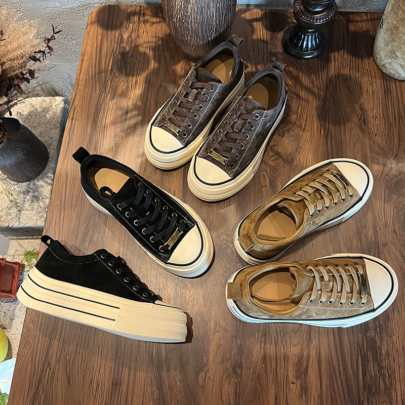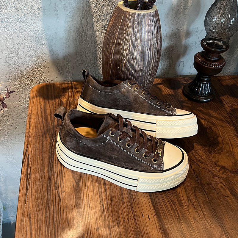 Leather little white shoes women's autumn new retro comfortable board thick soles increase height casual not tired feet sneakers