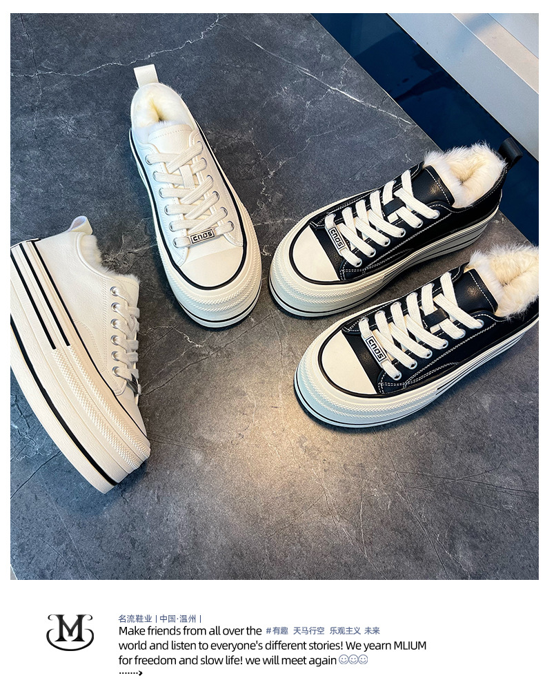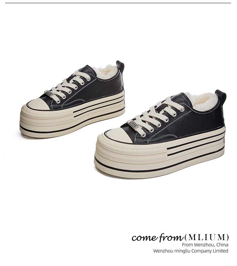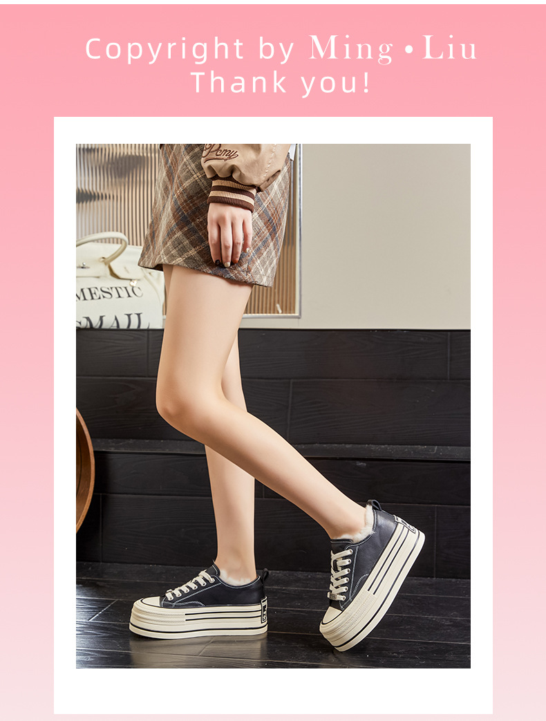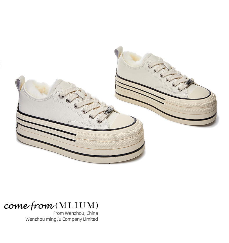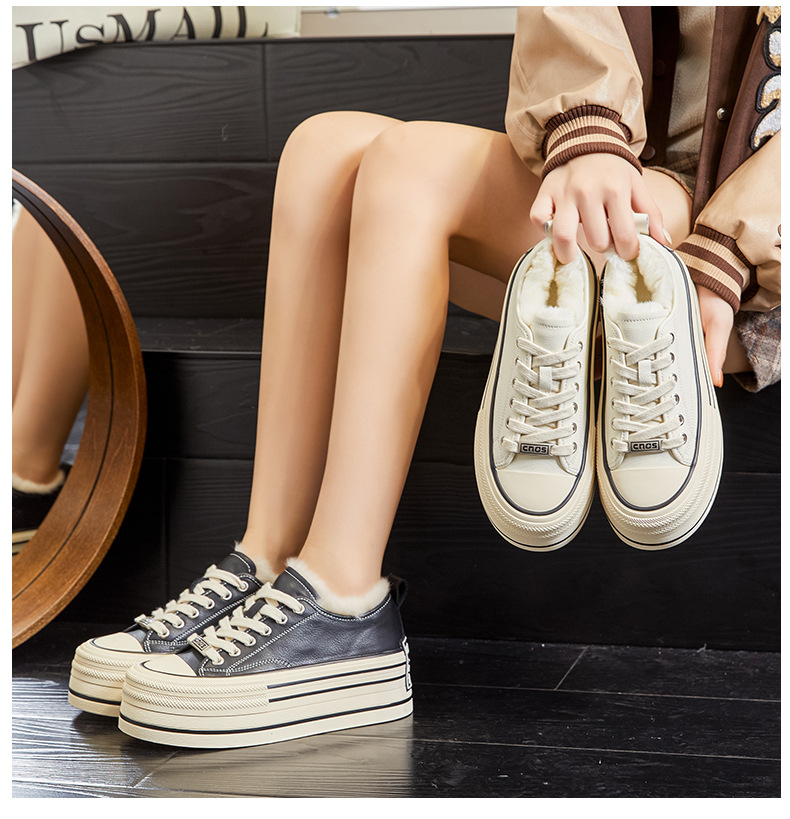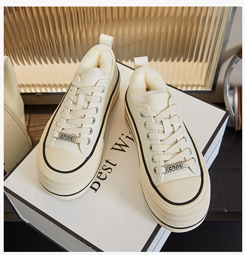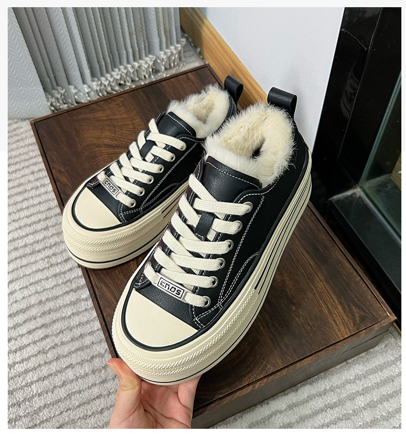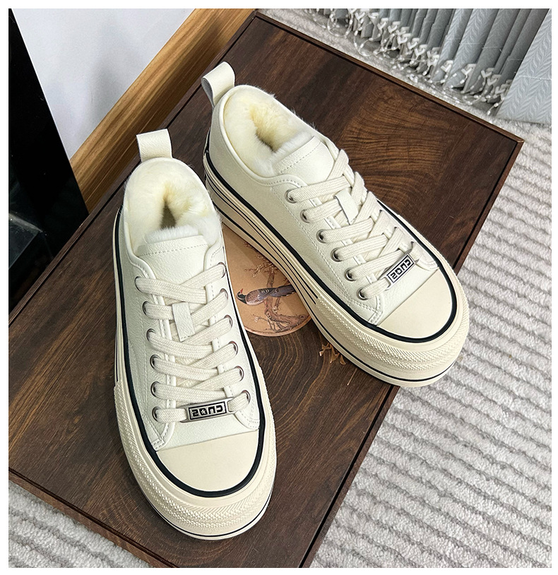 Leather rabbit fur little white shoes winter new thick-soled velvet board women's versatile casual single heightening sneakers