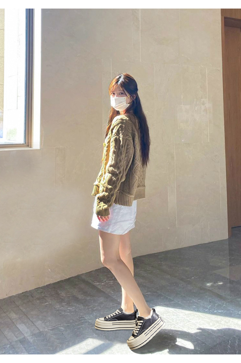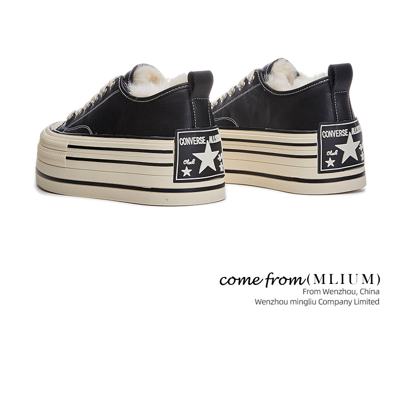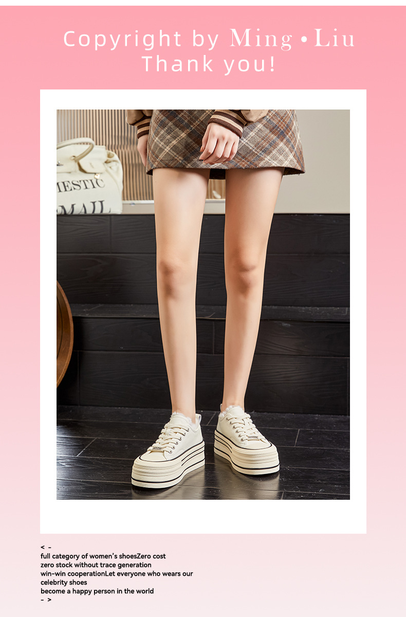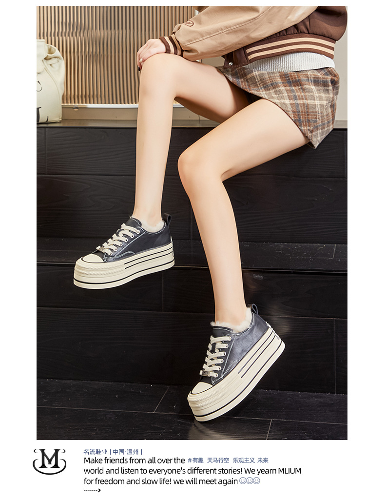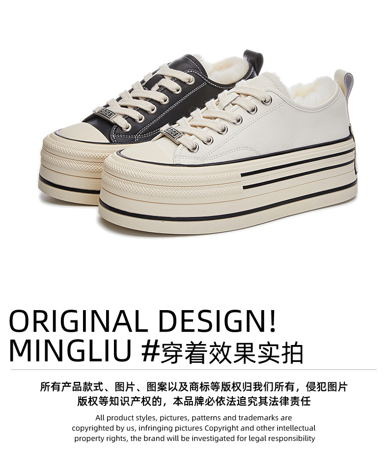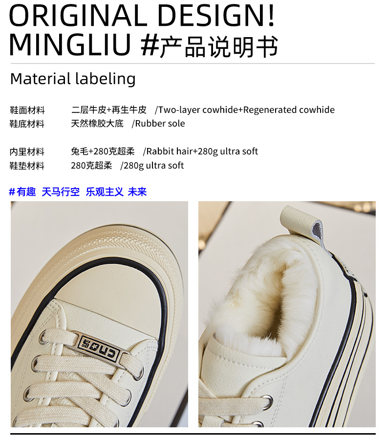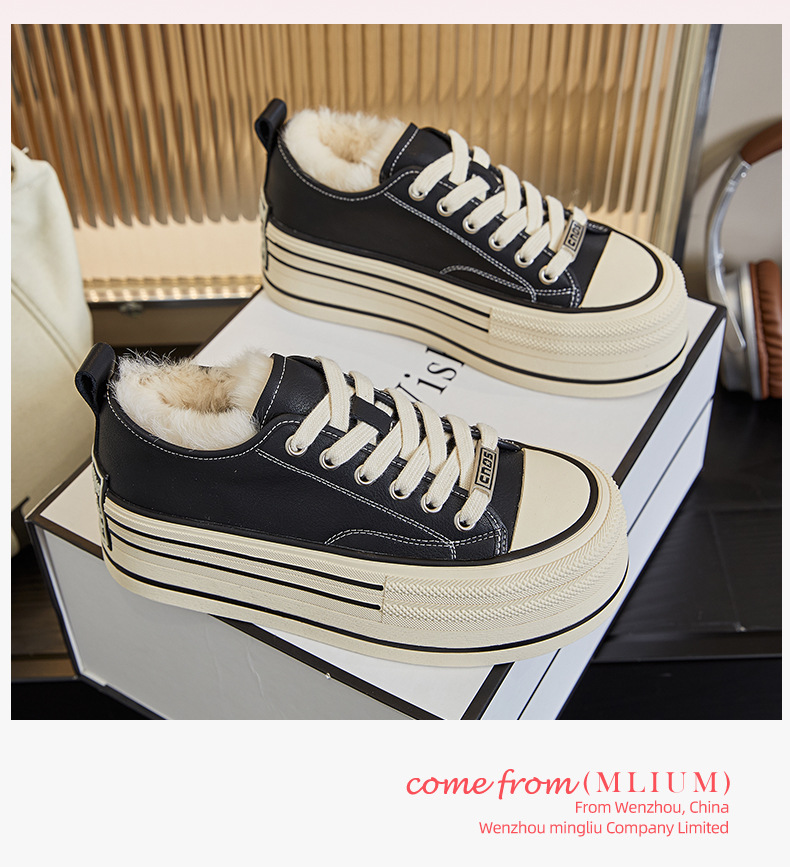 Leather rabbit fur little white shoes winter new thick-soled velvet board women's versatile casual single heightening sneakers