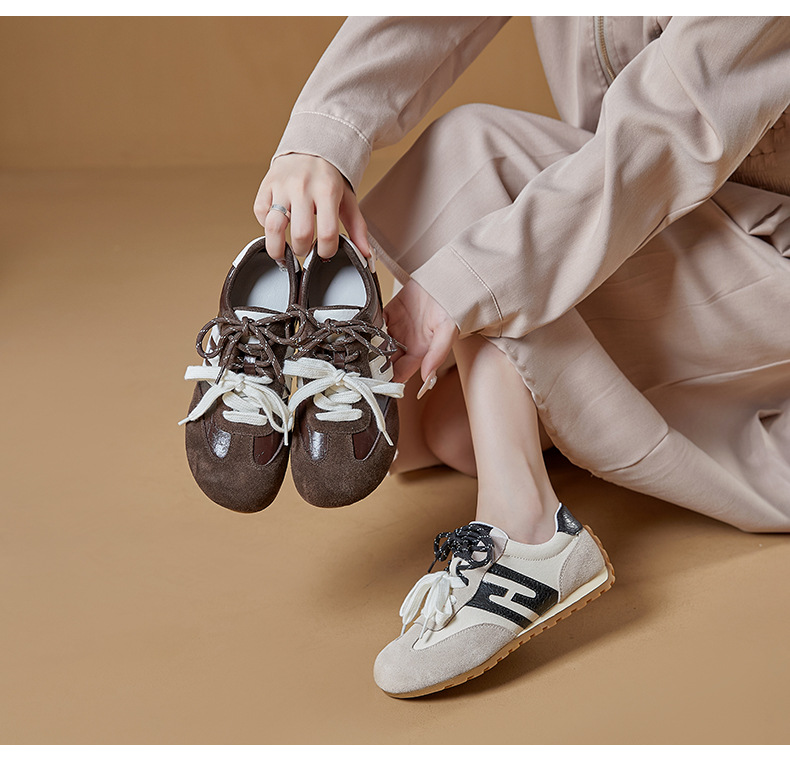 Leather retro German training shoes women's autumn new lightweight casual versatile racing flat sports sneakers