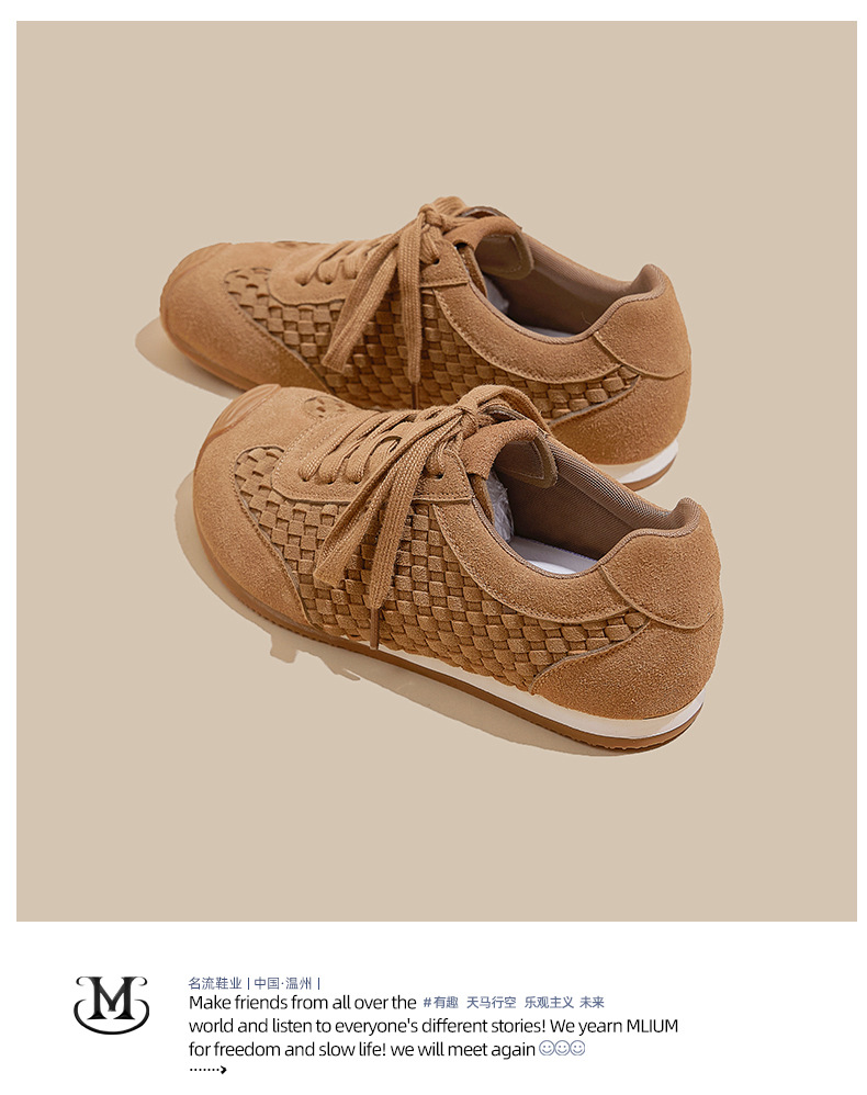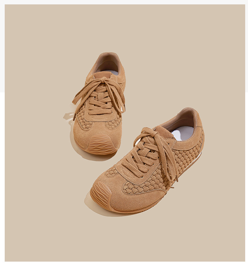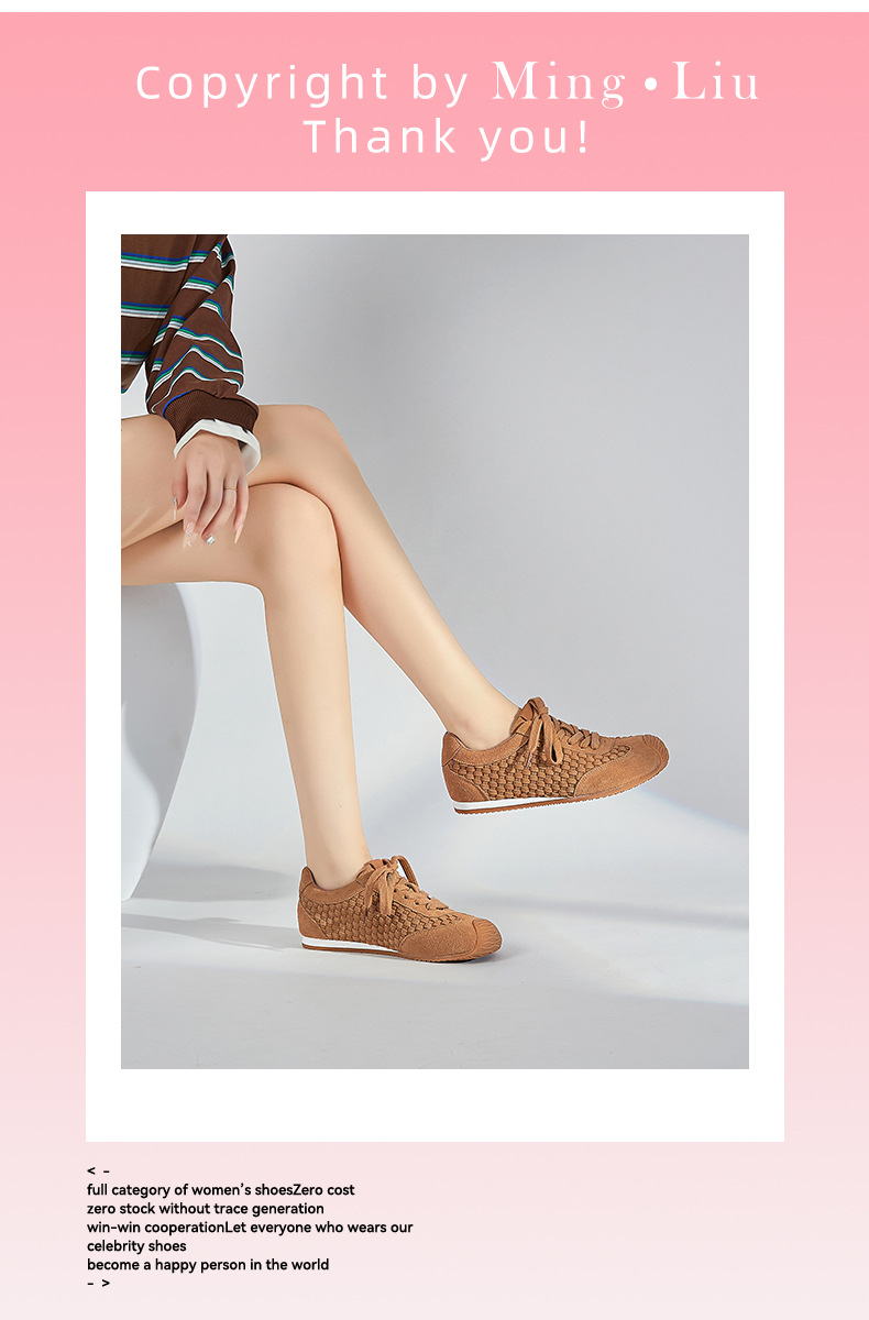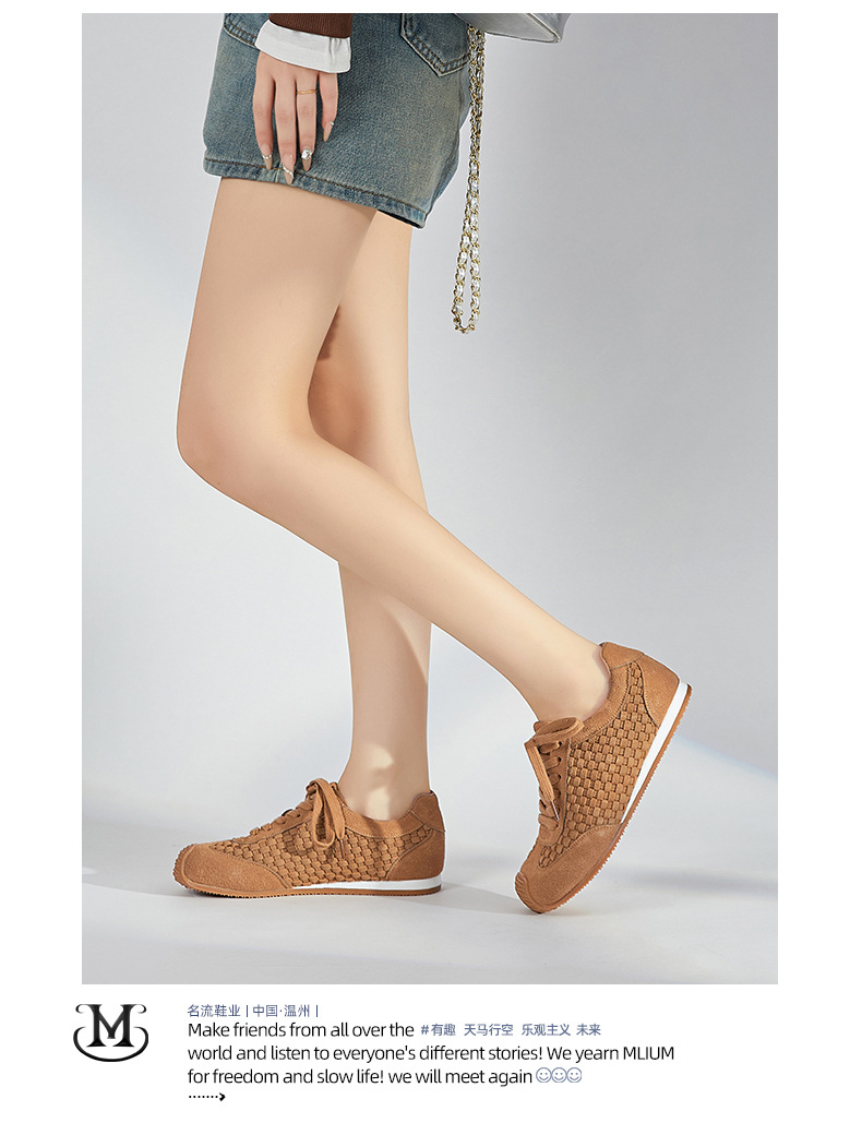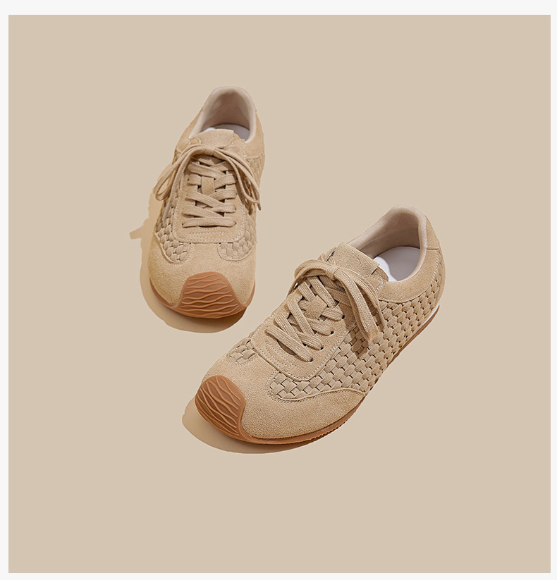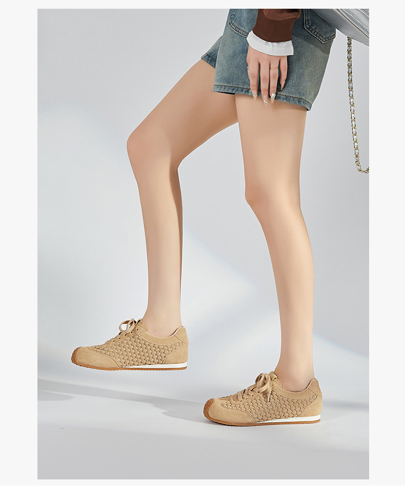 Leather woven German training shoes women's autumn new casual versatile Forrest Gump flat sneakers lace-up