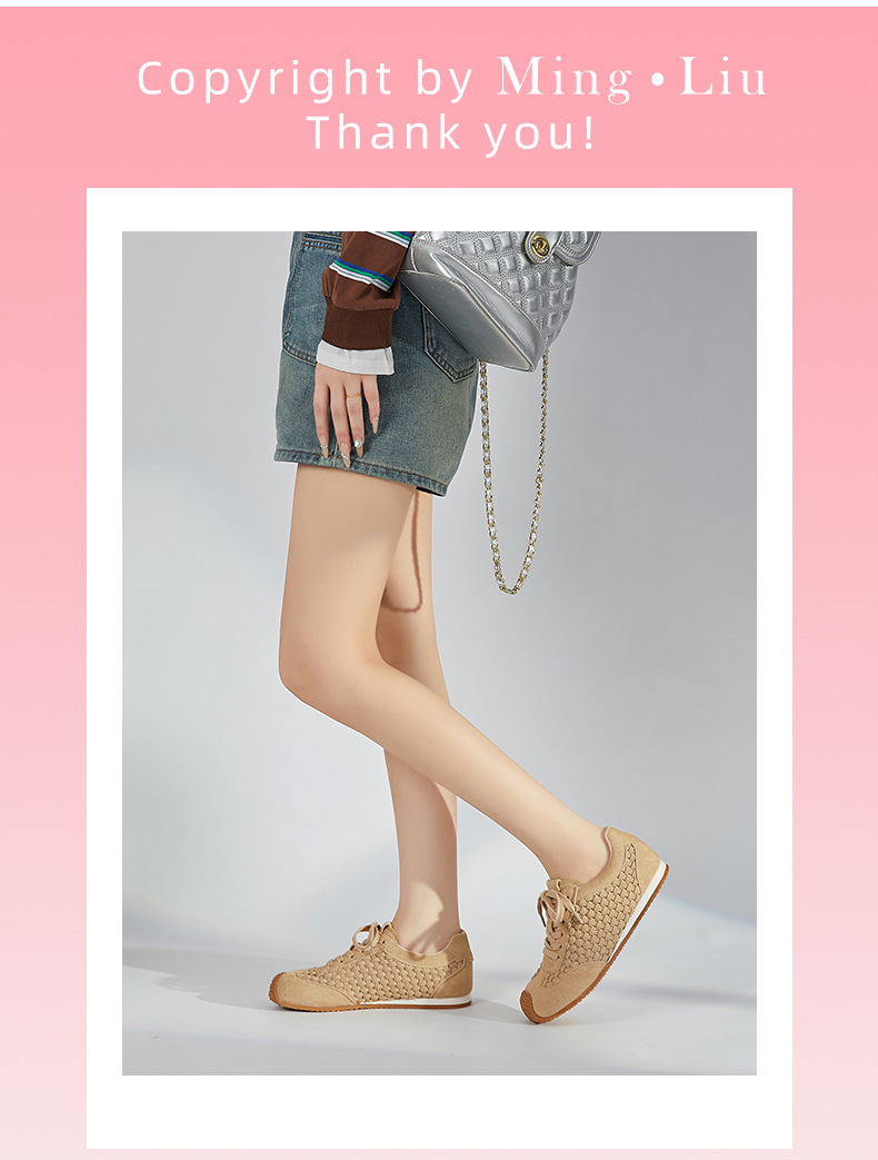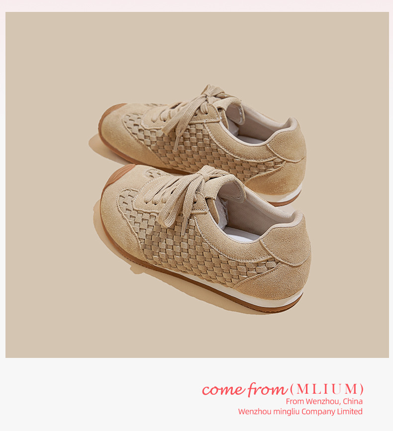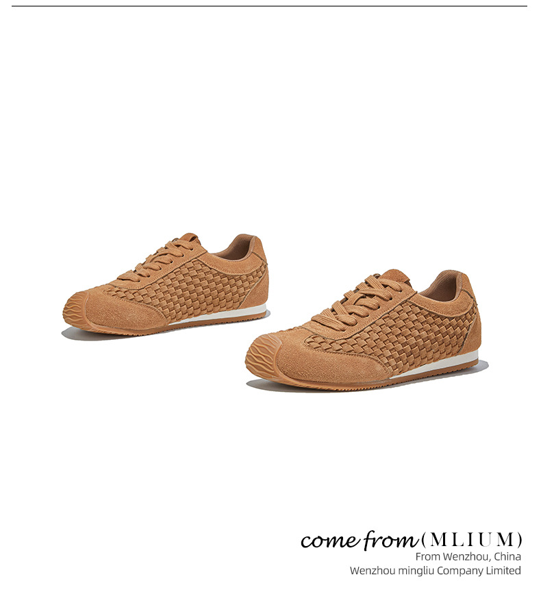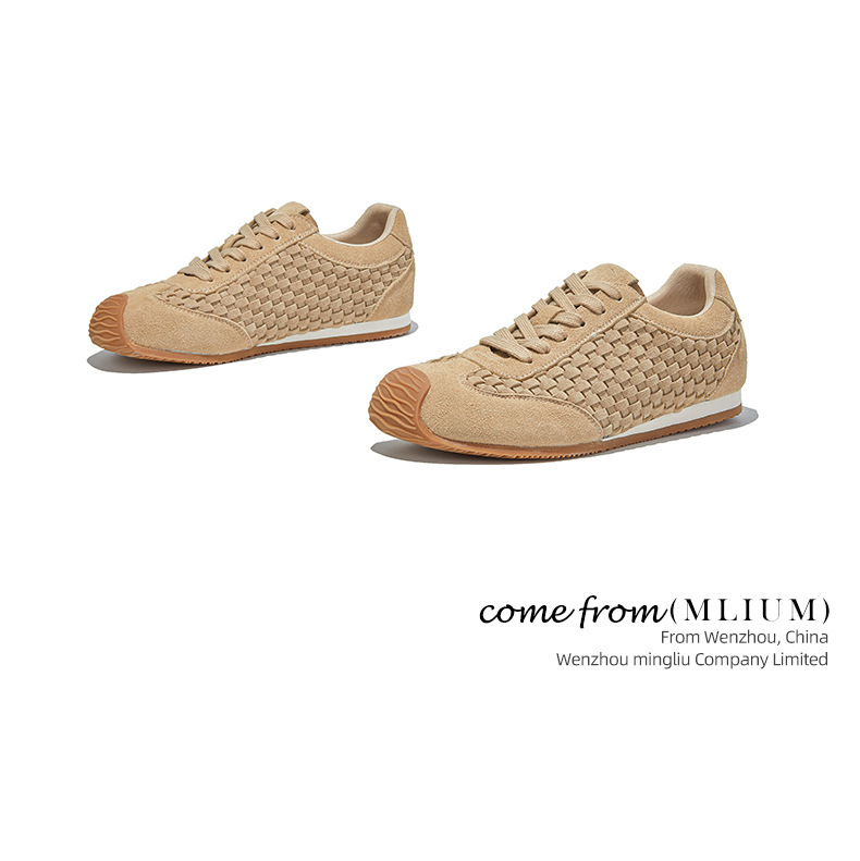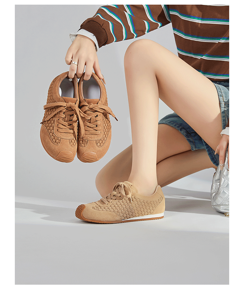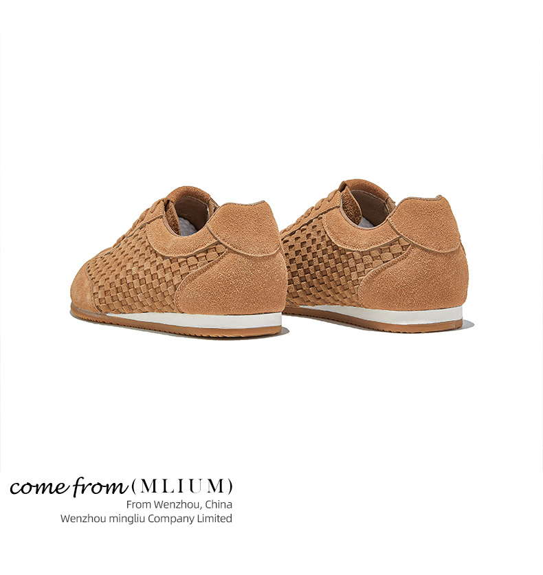 Leather woven German training shoes women's autumn new casual versatile Forrest Gump flat sneakers lace-up