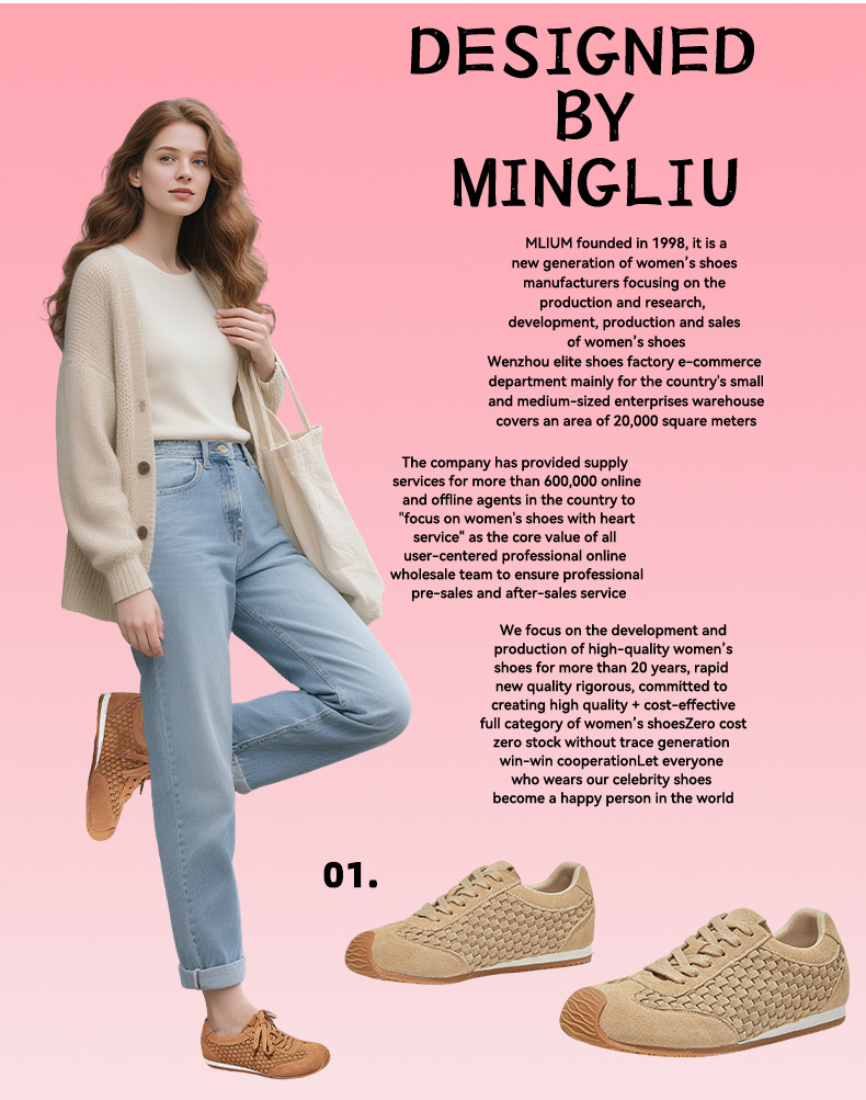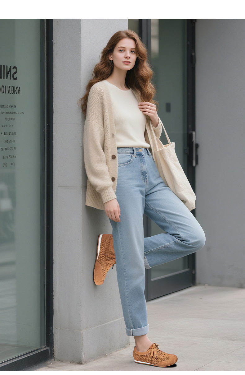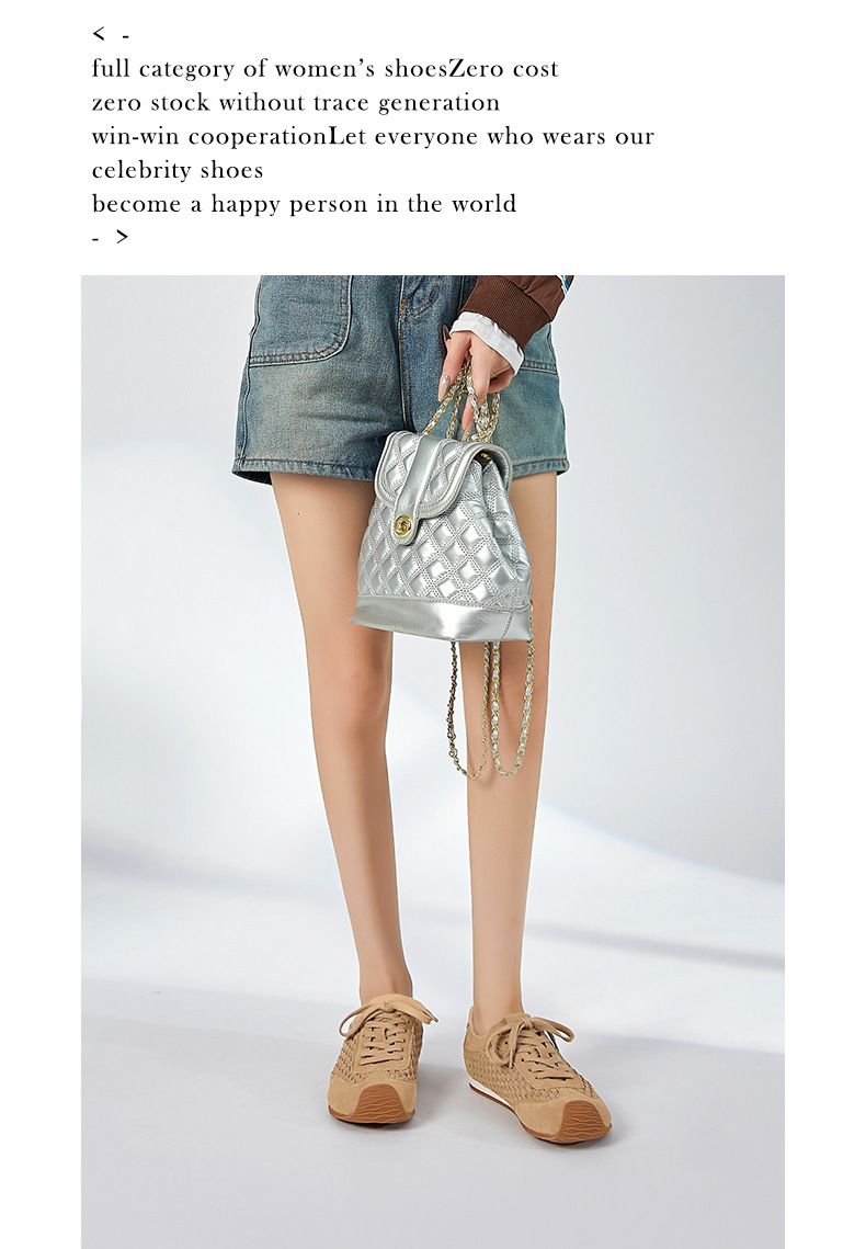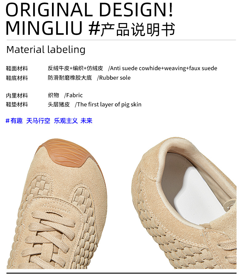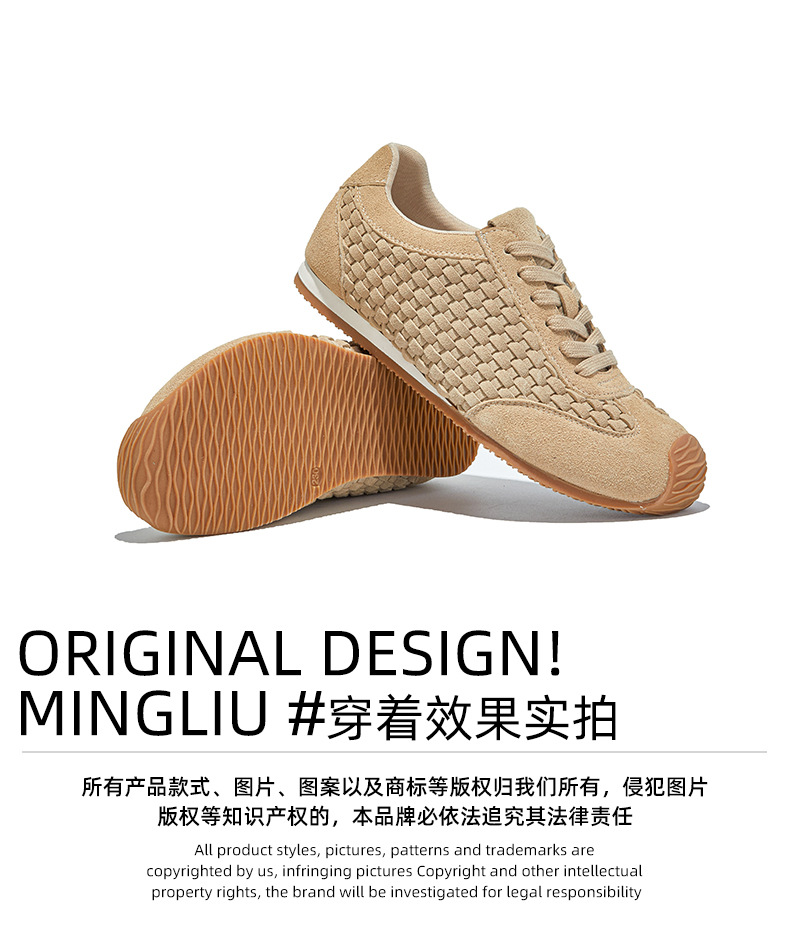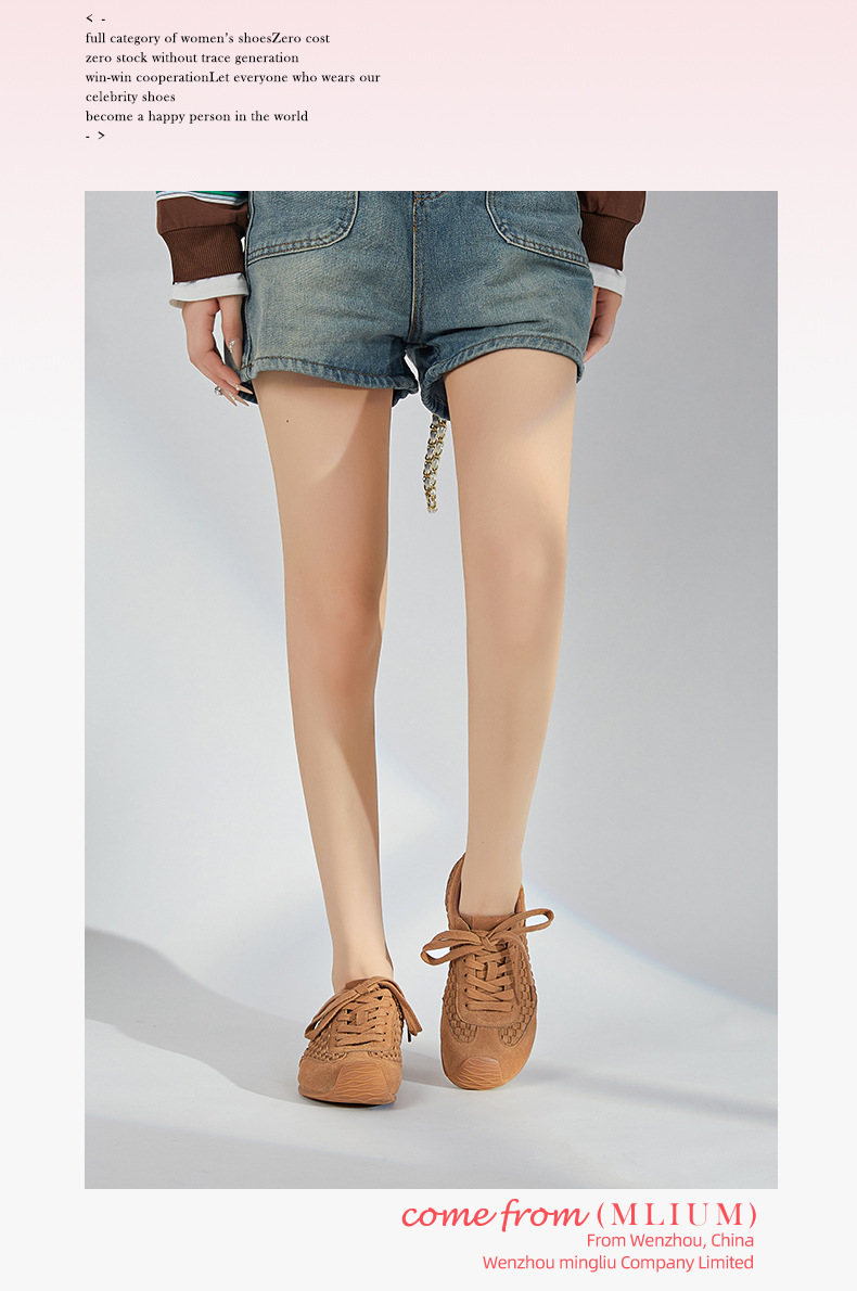 Leather woven German training shoes women's autumn new casual versatile Forrest Gump flat sneakers lace-up