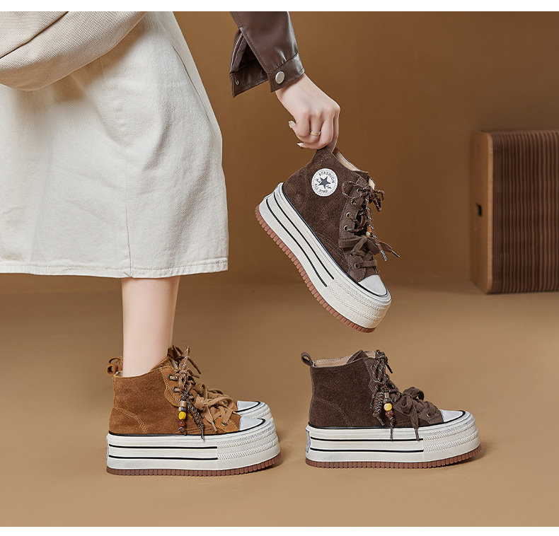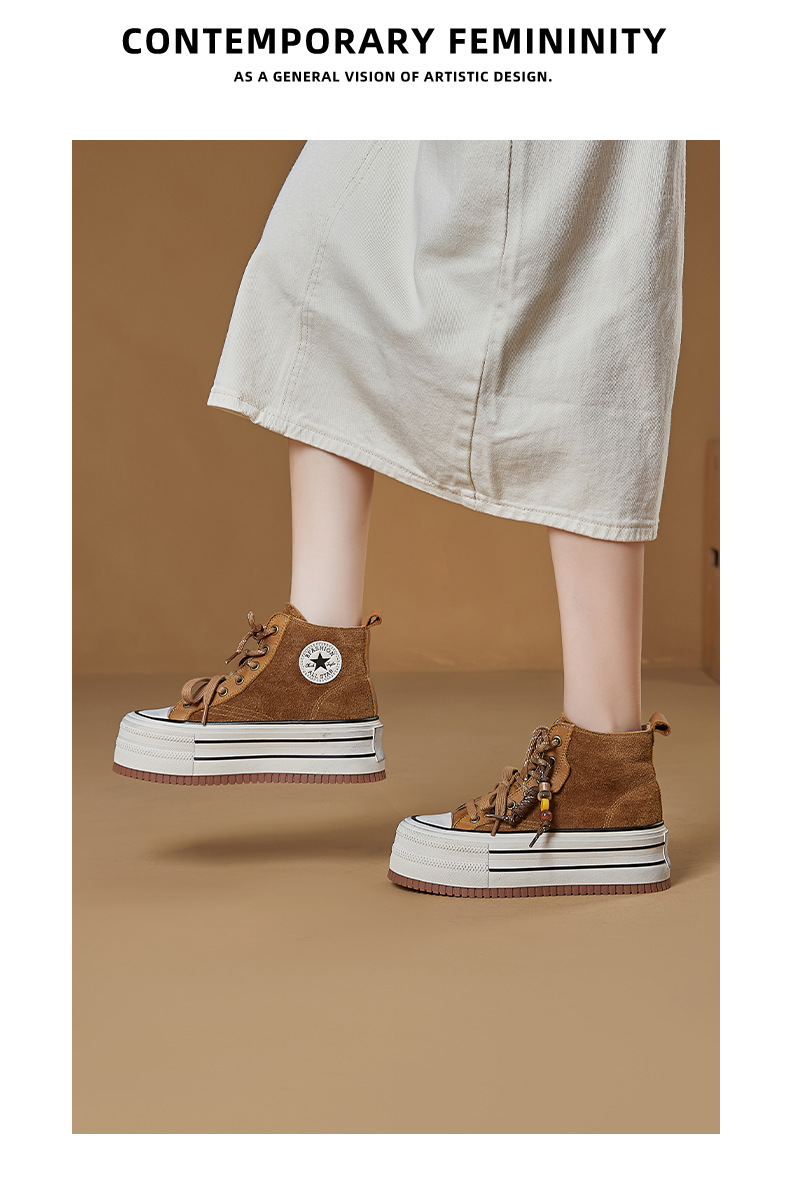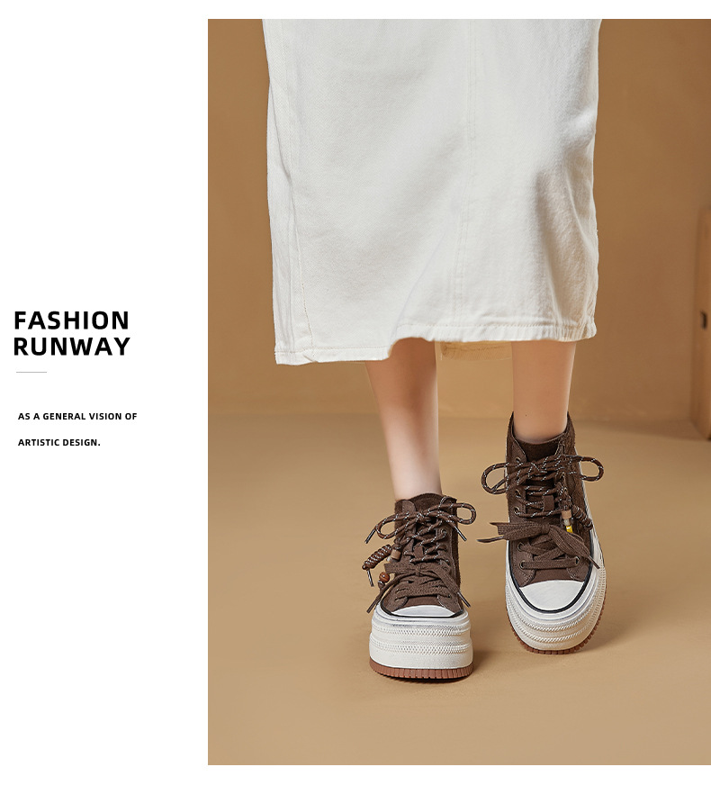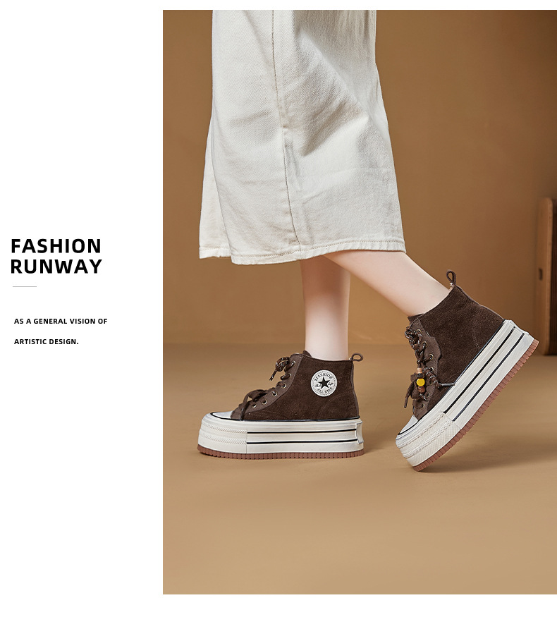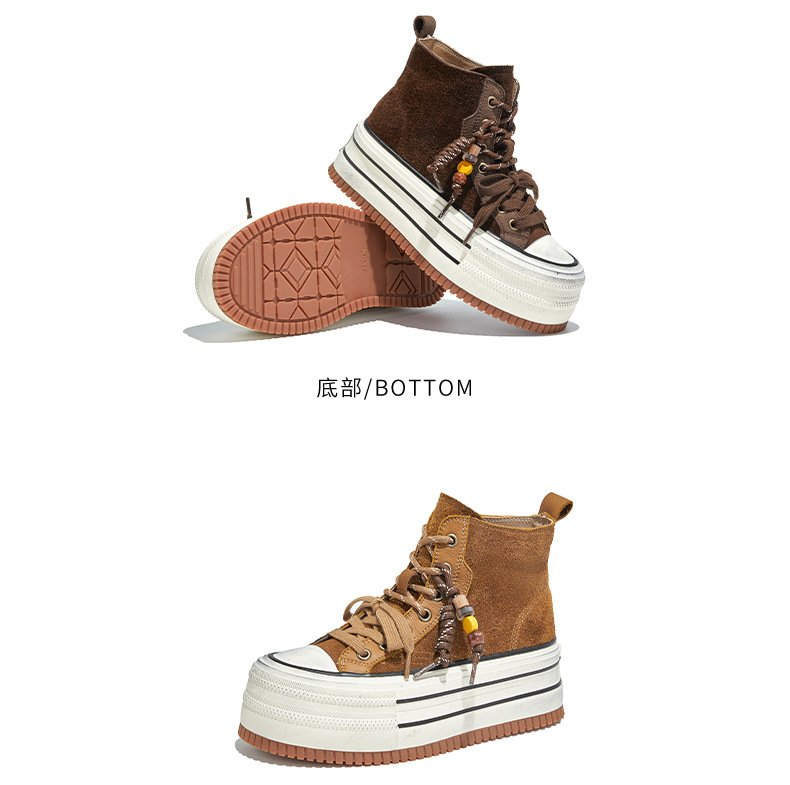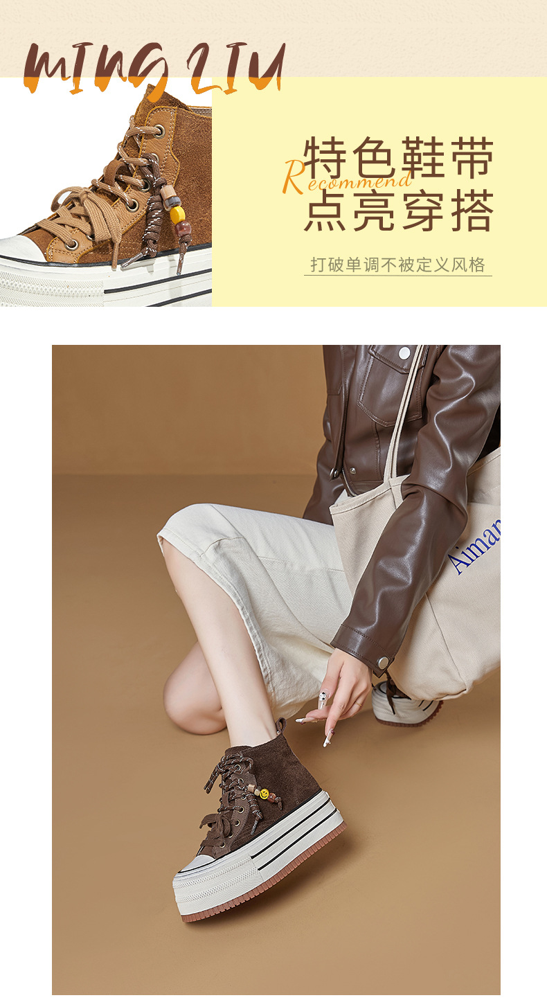 The First Layer of Cowhide High-top Little White Shoes Women's Autumn New Versatile Heightening Board Thick-soled Polished Ankle Boots