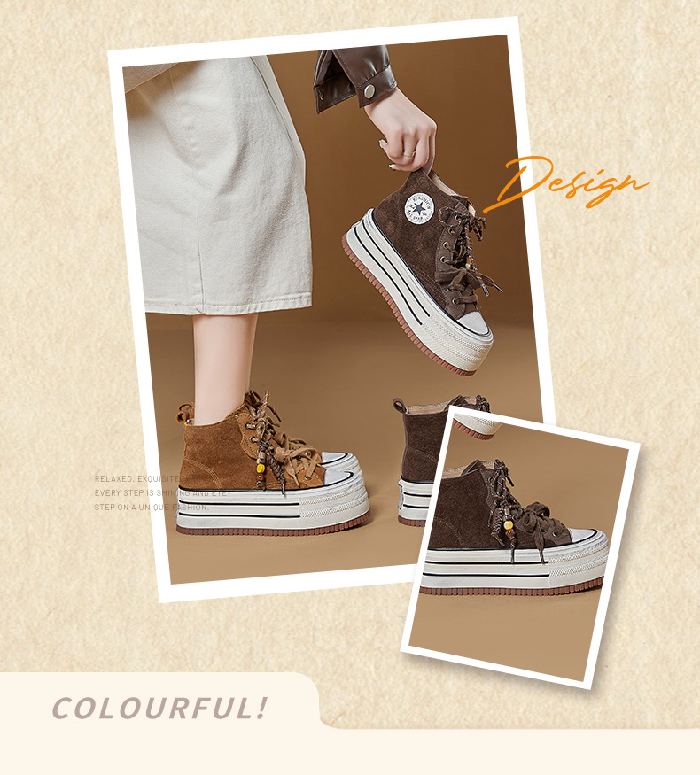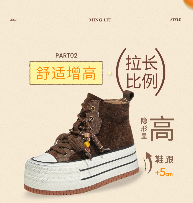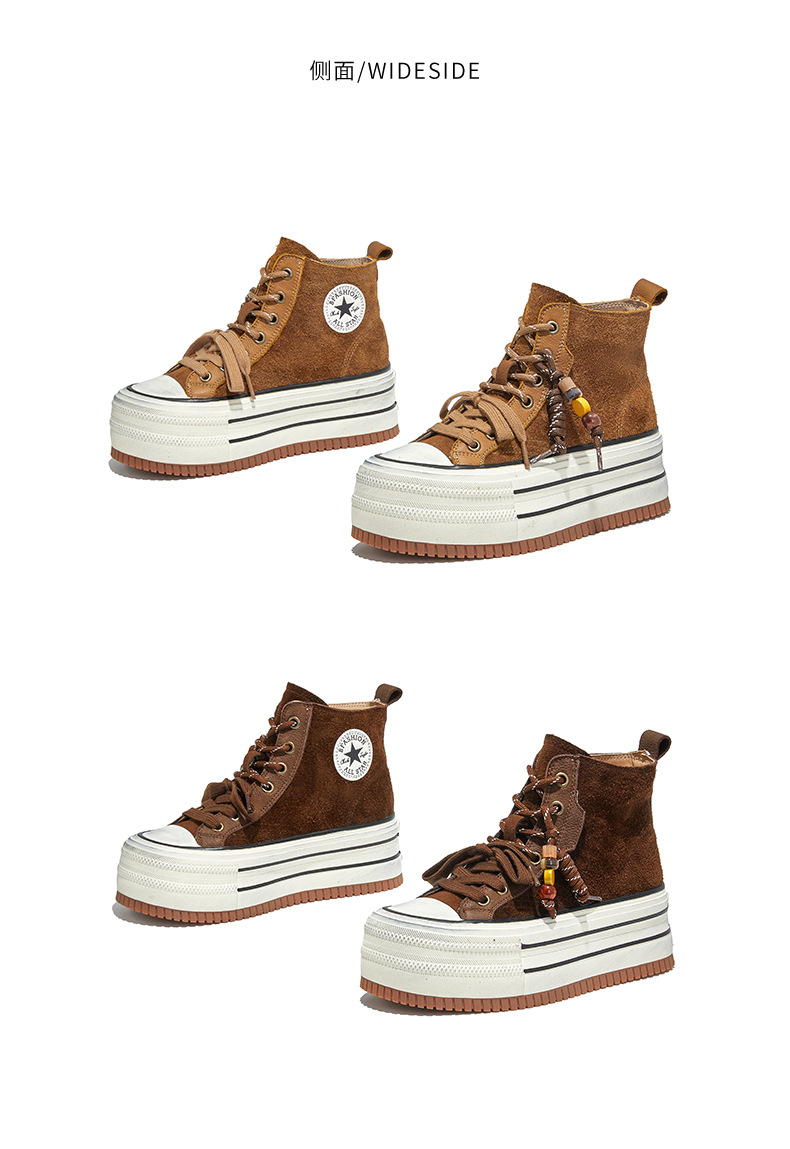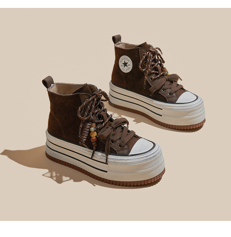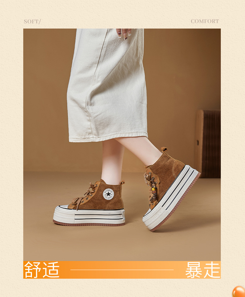 The First Layer of Cowhide High-top Little White Shoes Women's Autumn New Versatile Heightening Board Thick-soled Polished Ankle Boots