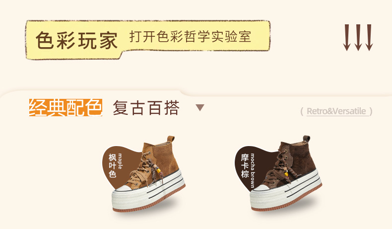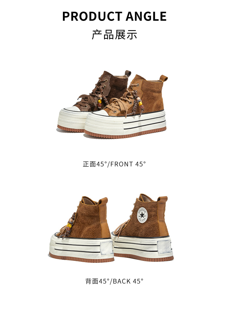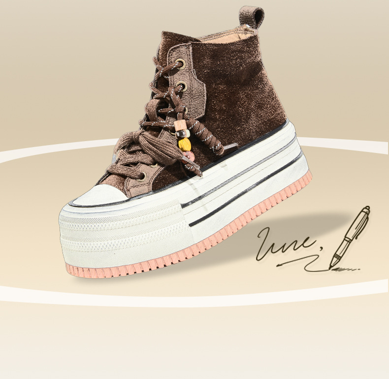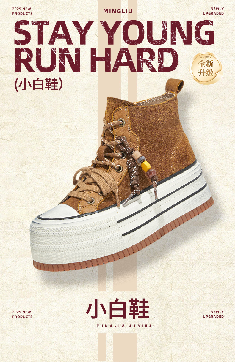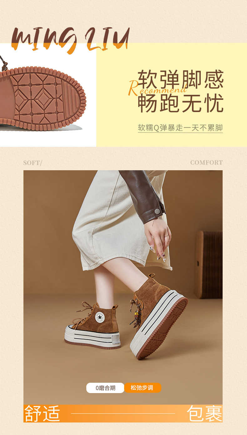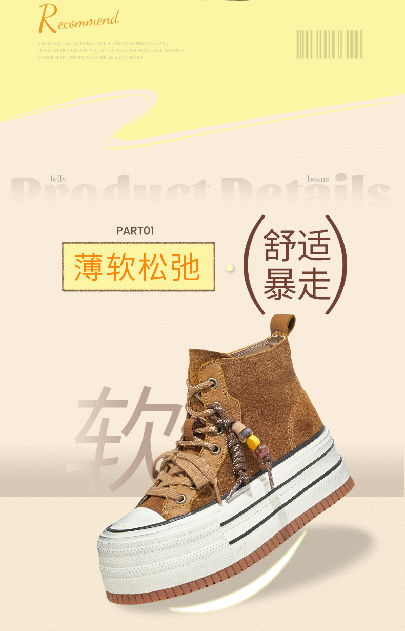 The First Layer of Cowhide High-top Little White Shoes Women's Autumn New Versatile Heightening Board Thick-soled Polished Ankle Boots