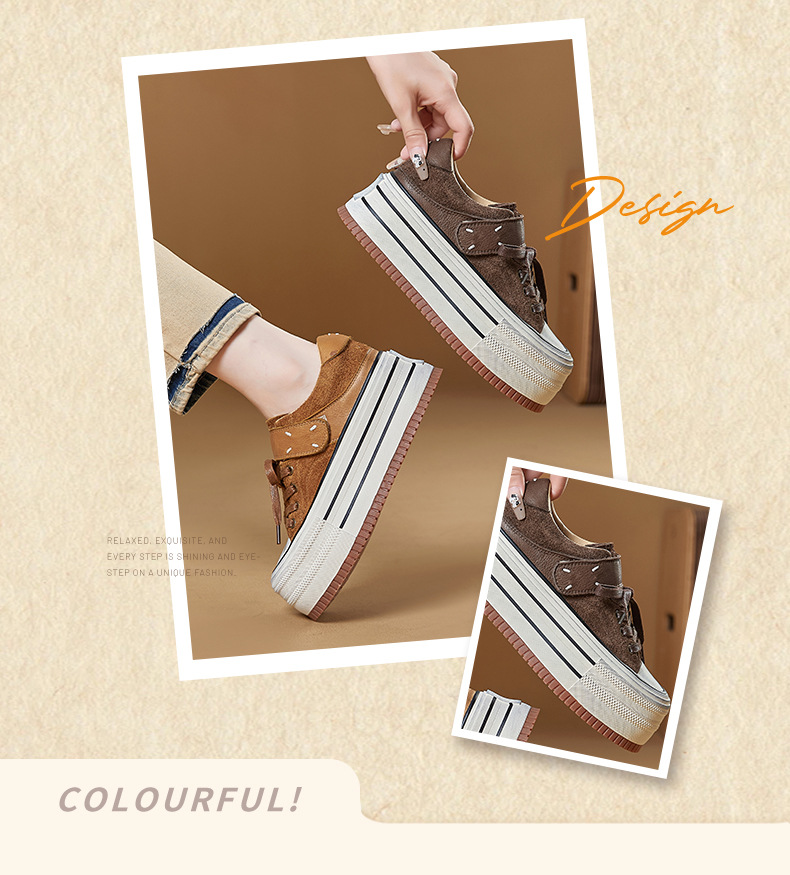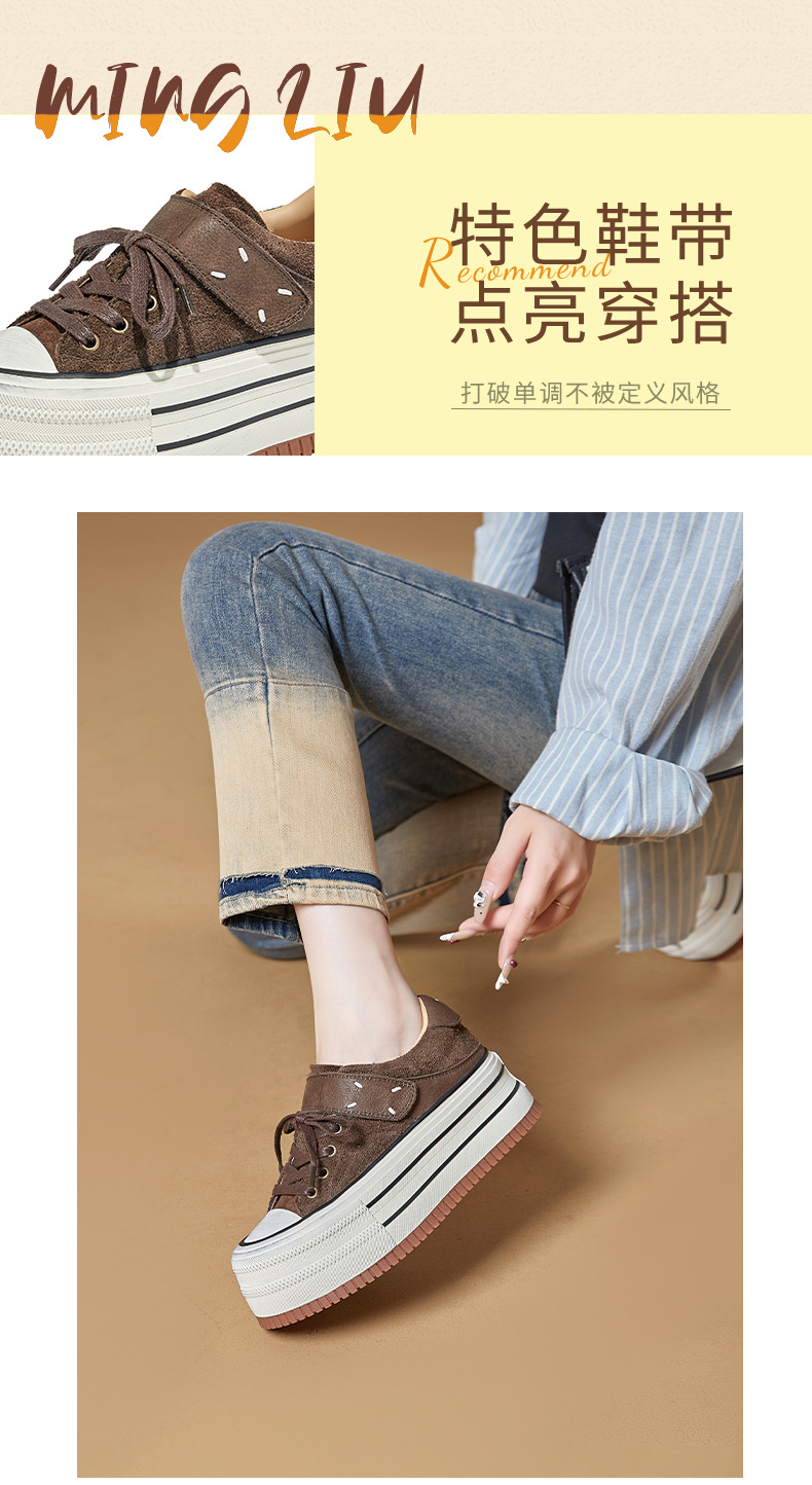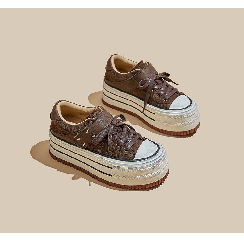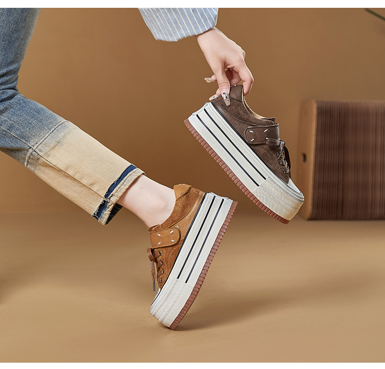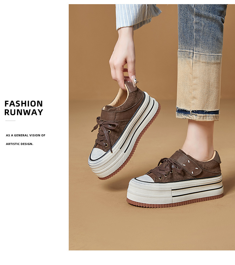 The First Layer of Cowhide Little White Shoes Women's Autumn New Thick-soled Heightening Muffin Casual Versatile Polished Sneakers