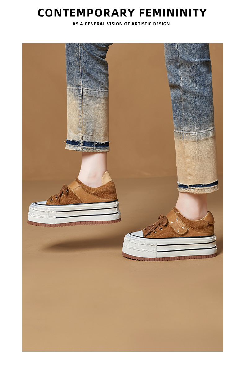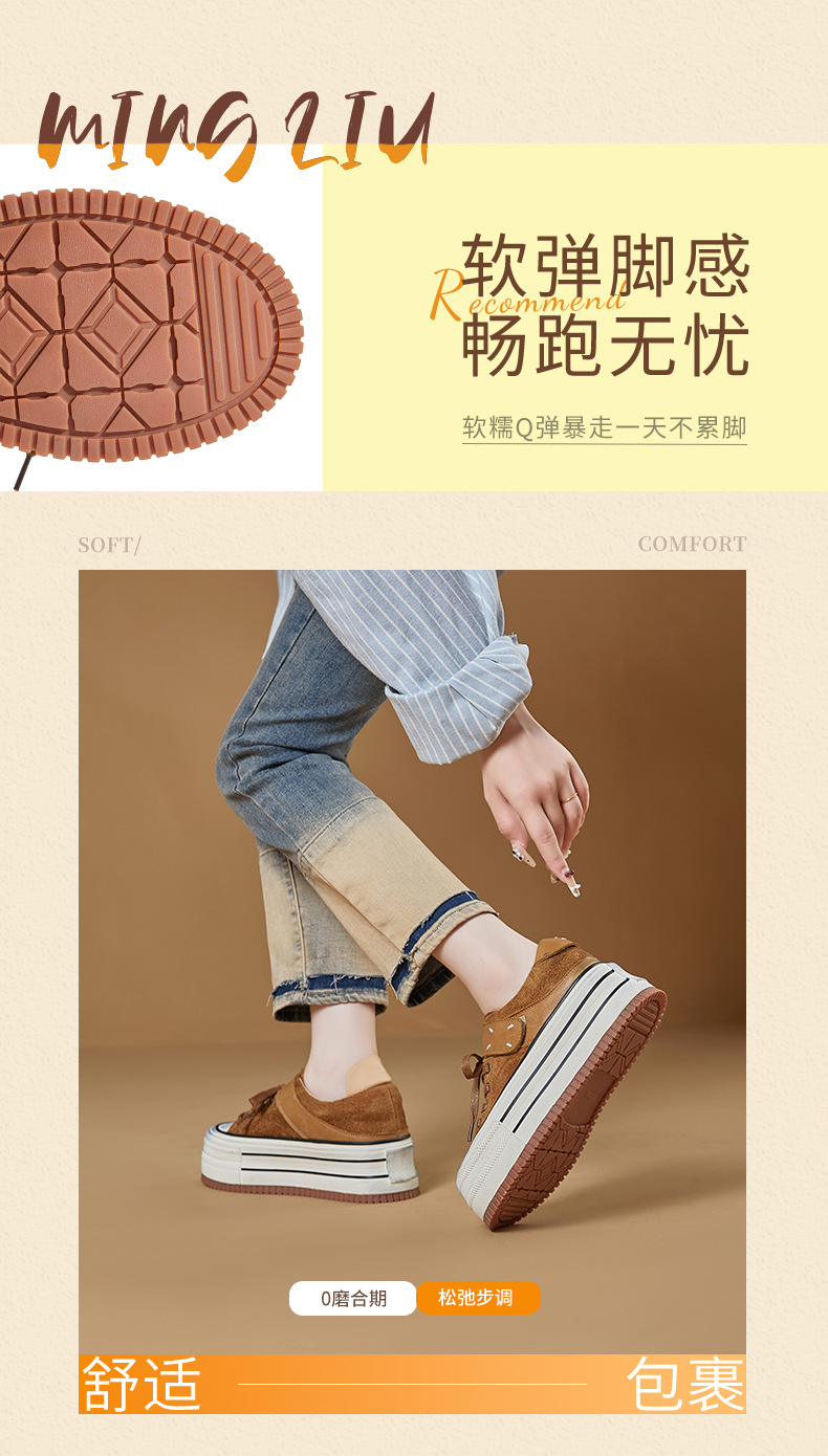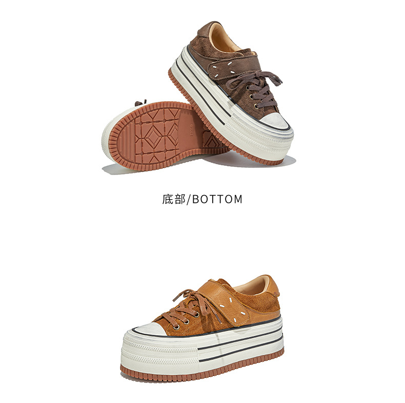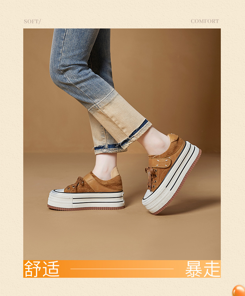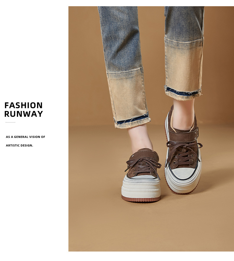 The First Layer of Cowhide Little White Shoes Women's Autumn New Thick-soled Heightening Muffin Casual Versatile Polished Sneakers